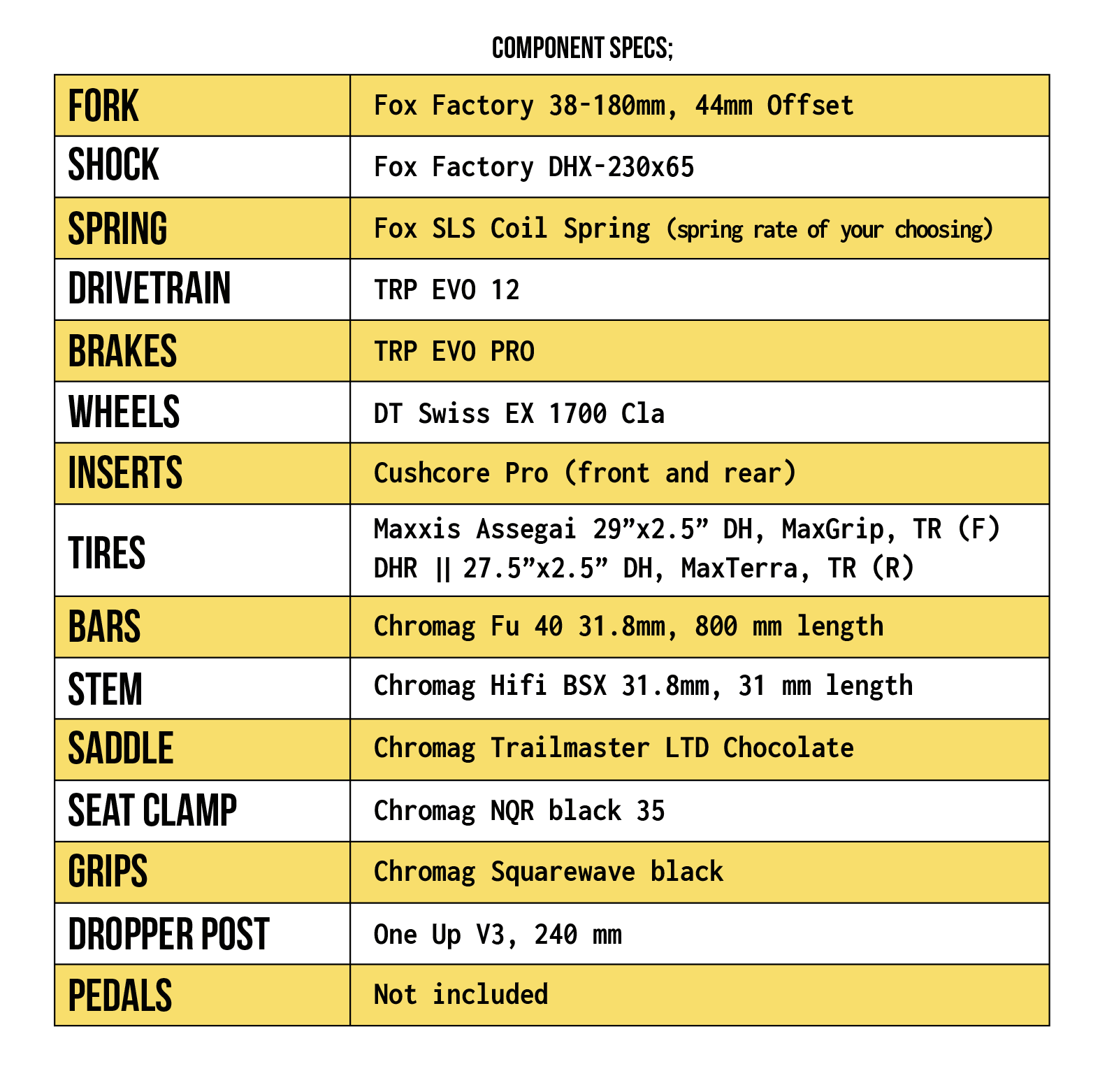 Our geometry philosophy is short reach and high stack. Since the linkage gives the bike so much stability, you don’t need a long reach. The shorter reach gives the OPUS a more playful feel, and the higher stack puts you in a better position for the steeps. No need to slam your bars to try and keep weight on the front wheel- our linkage will take care of that for you.